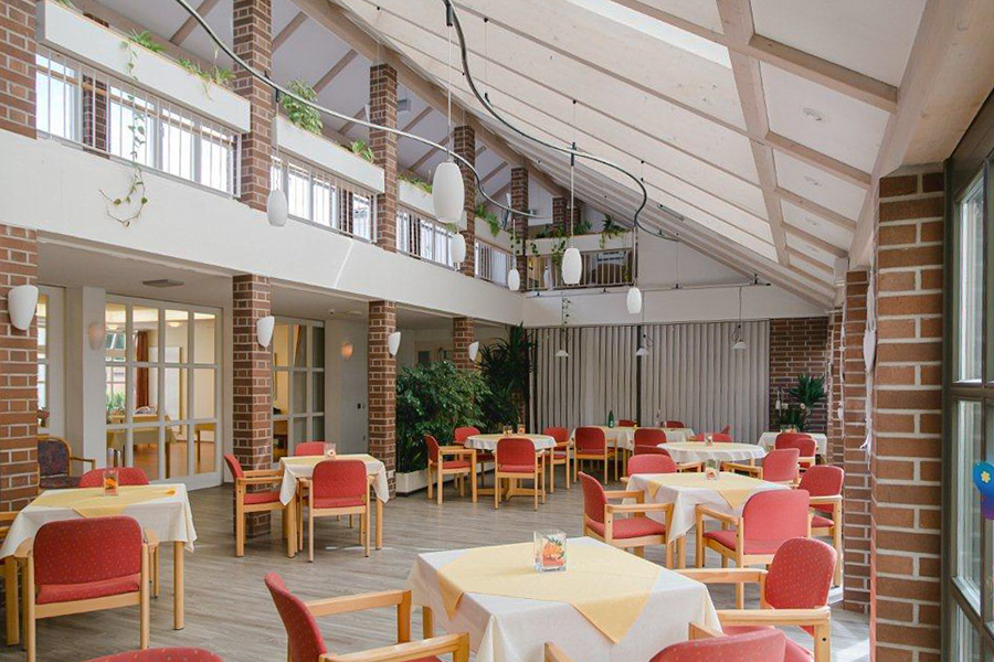 - Das Essen wird im großen Speisesaal und in den Wohnküchen auf Station serviert