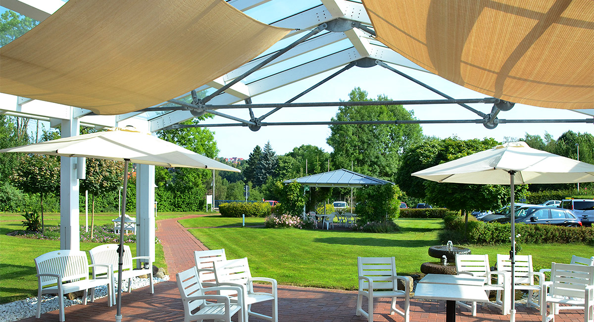 Gartenanlage Springbrunnen vor dem Eingangsbereich Garten- und Teichanlage im hinteren Gartenbereich Gartenanlage im Innenhof der Villa St. Jacobi